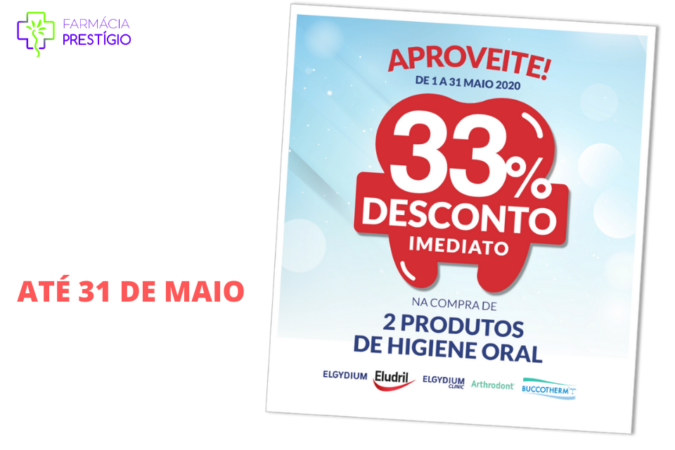 33% de desconto na compra de dois produtos de higiene oral da gama Elgydium, Eludril, Elgydium