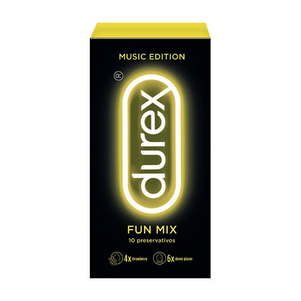 Durex Preservativos Music Edition Fun Mix é composto por 6 preservativos “Dá-me Prazer” e 4 preservativos Strawberry.